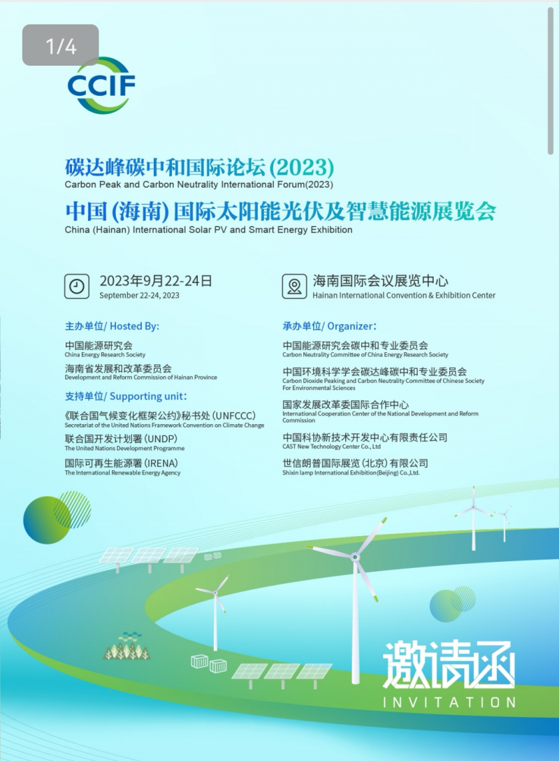 為加快海南清潔能源島建設(shè),促進風(fēng)能、太陽能、智慧能源等清潔能源領(lǐng)域的國際交流與合作,推動海上風(fēng)電、光伏發(fā)電、智慧能源等清潔能源產(chǎn)業(yè)的發(fā)展,由中國能源研究會、海南省發(fā)展和改革委員會共同主辦的“碳達峰碳中和國際論壇(2023)、2023中國(海南)國際太陽能光伏及智慧能源展覽會”將于2023年9月22日-24日在海南國際會議展覽中心召開。集中展示全球風(fēng)能、太陽能與、布式能源等清潔能源領(lǐng)域的新技術(shù)、新產(chǎn)品、新工藝和最新解決方案,大會同期召開國際碳達峰碳中和技術(shù)博覽會。