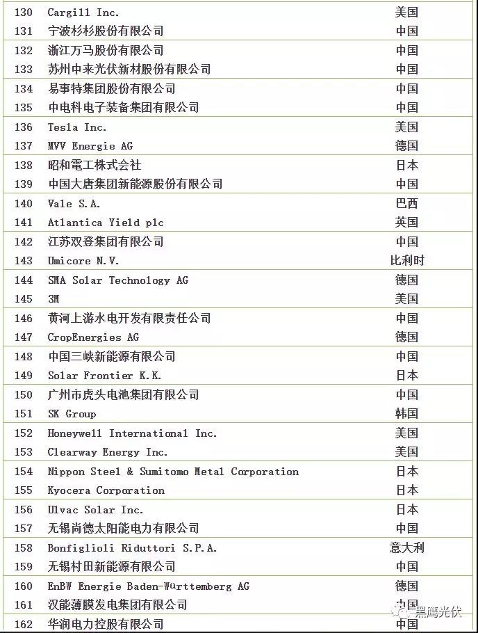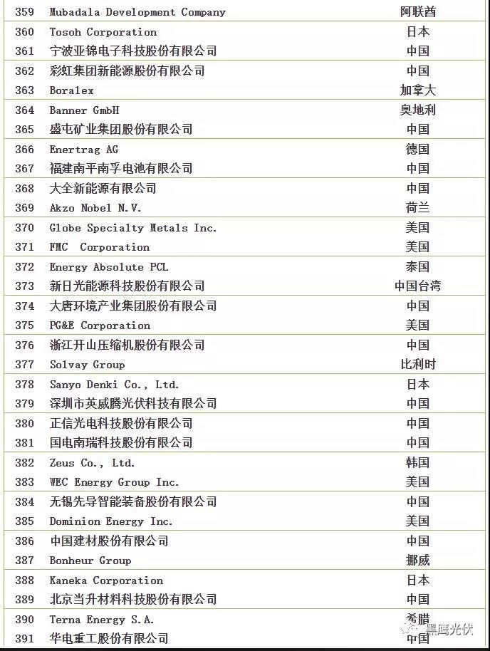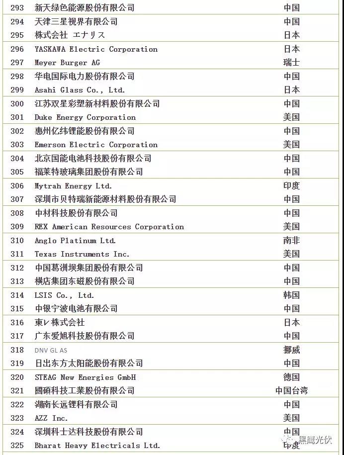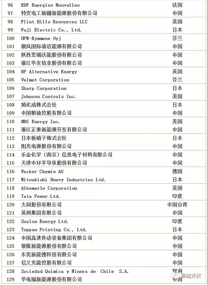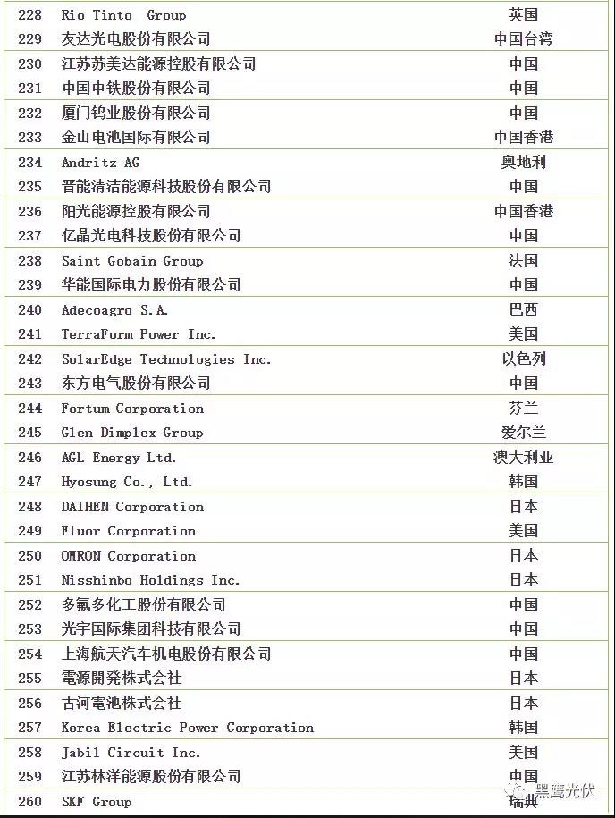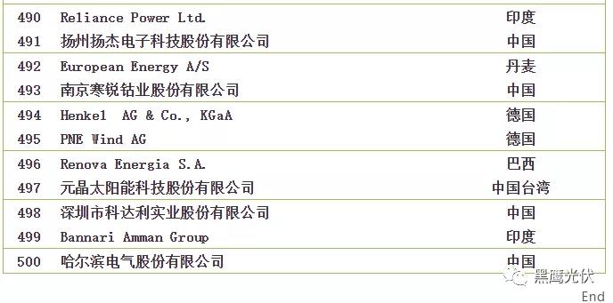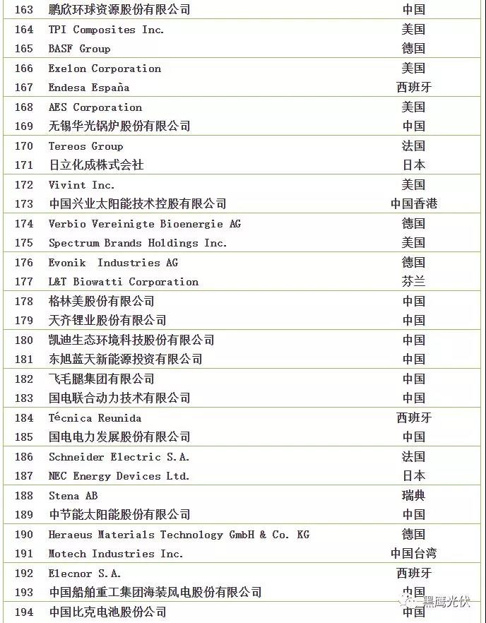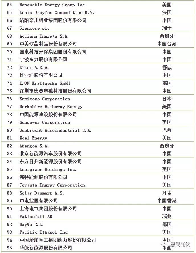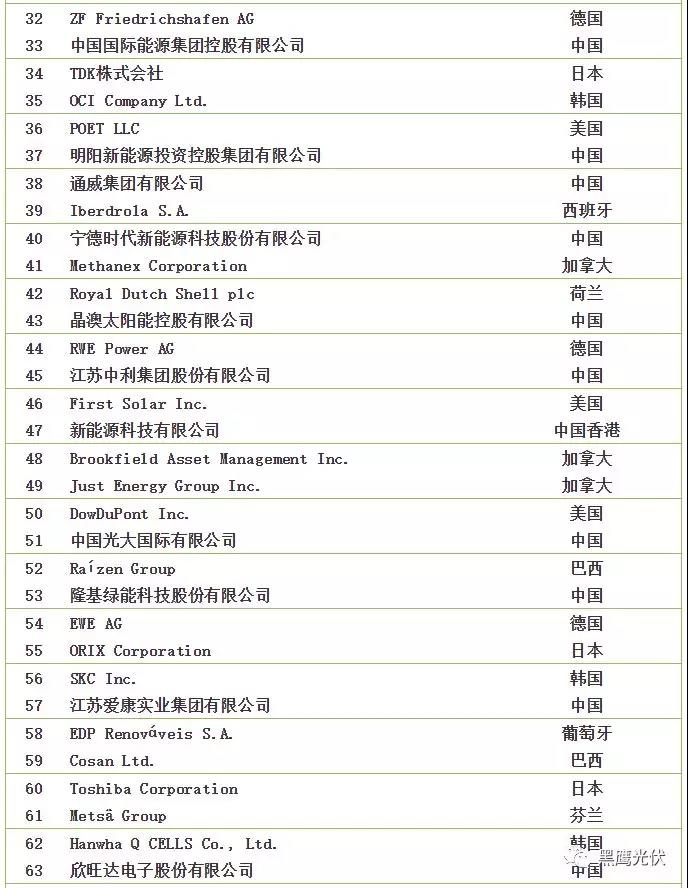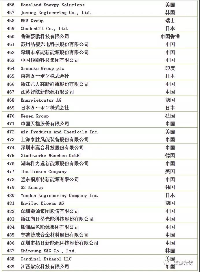 2018全球新能源企業(yè)500強(qiáng)榜單