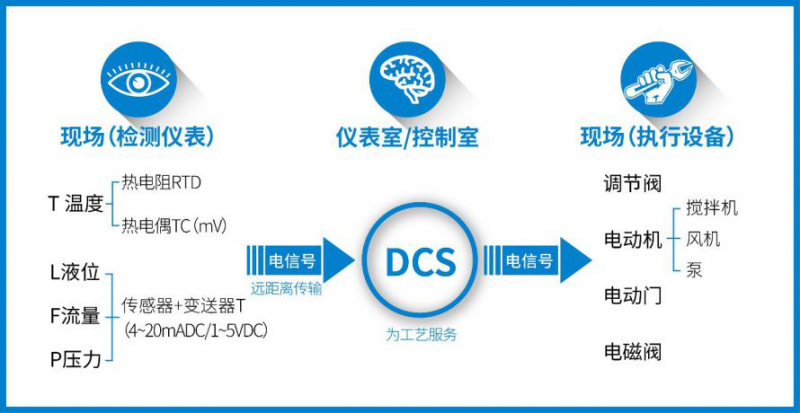 DCS控制系統(tǒng)相當(dāng)于這座“超級工廠”的“工業(yè)大腦”,它負(fù)責(zé)采集和控制整條生產(chǎn)線涉及的溫度、壓力、流量、液位的模擬量,控制風(fēng)機、泵類及各種閥門的開關(guān)量、開關(guān)順序,并結(jié)合開關(guān)量、模擬量進行混合控制。