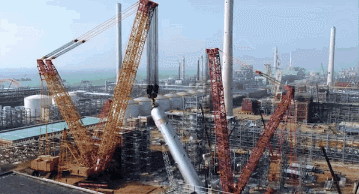 浙江石化4000萬噸/年煉化一體化項目坐落于舟山魚山島。在這里登高俯瞰,千萬噸級常減壓電脫鹽罐、千噸級塔器、2.6萬噸煉油廠核心模塊、950噸整體冷箱……這些巨石林立的大型石化生產(chǎn)設(shè)施、塔吊,密密麻麻的活動板房,3.7萬名作業(yè)人員正在緊張而有序地施工……山丘和海岸線之間,一座斥資資1730億元的“超級工廠”正在拔地而起。