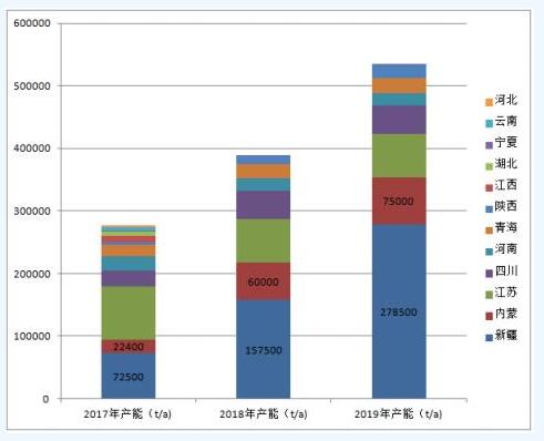 目前中國多晶硅產(chǎn)能主要集中在新疆、內(nèi)蒙、江蘇、四川等地區(qū),產(chǎn)能集中度從2017年初的74.1%增加到2018年底的85.7%,根據(jù)各企業(yè)擴產(chǎn)規(guī)劃統(tǒng)計,到2019年,這四個地區(qū)多晶硅產(chǎn)能共計將占到國內(nèi)總產(chǎn)能的87.6%,集中度進一步提升。