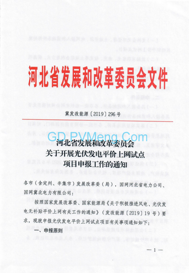 平價上網(wǎng)試點項目申報工作的通知(冀發(fā)改能源〔2019〕296號)20190308