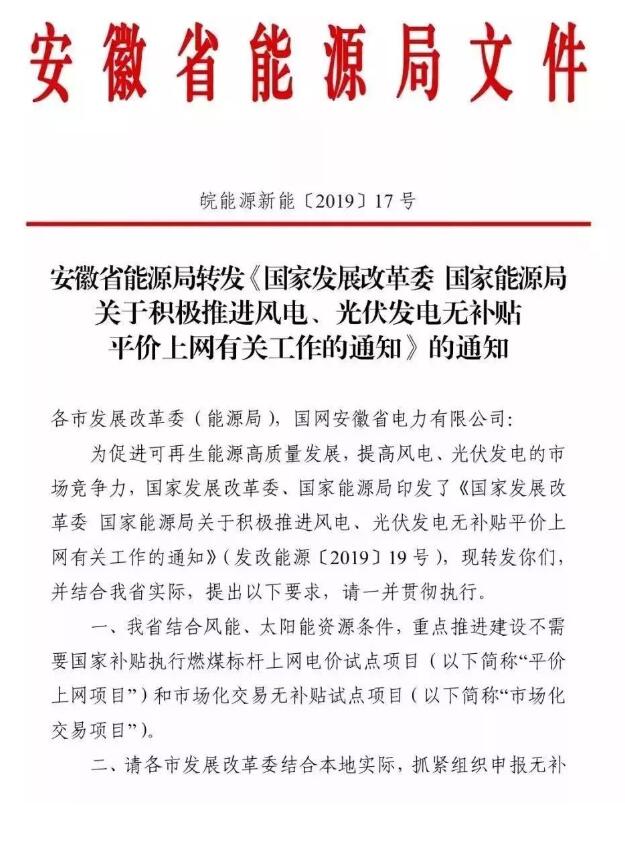 三、安徽:3月20日前上報光伏發(fā)電平價上網(wǎng)試點(diǎn)項(xiàng)目