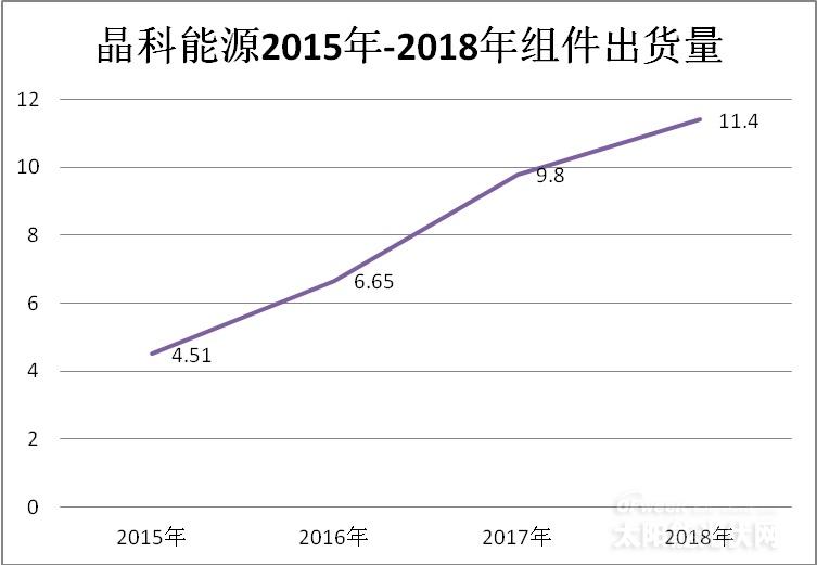 晶科能源2015年-2018年組件出貨量