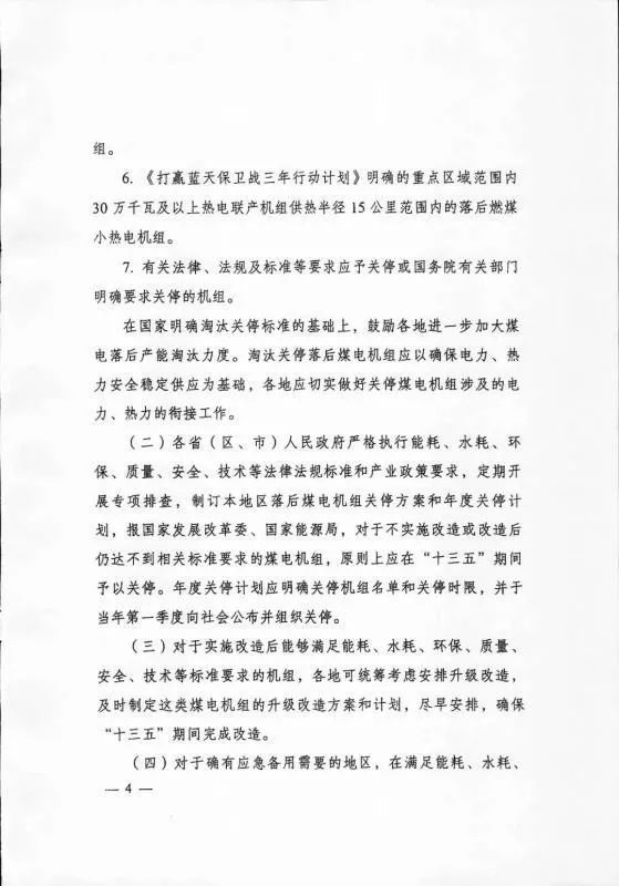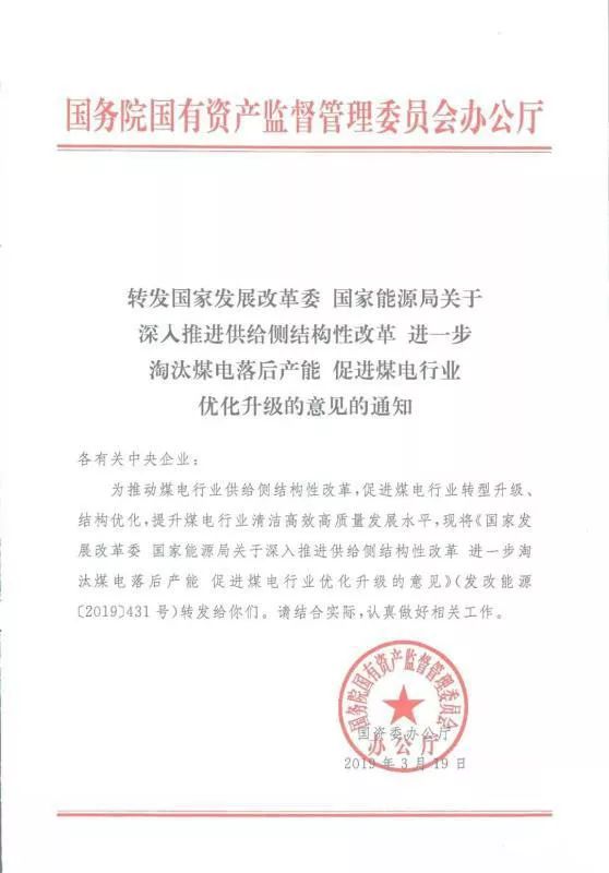 3月19日,國資委轉(zhuǎn)發(fā)了國家發(fā)改委、國家能源局的《關(guān)于深入推進(jìn)供給側(cè)結(jié)構(gòu)性改革進(jìn)一步淘汰煤電落后產(chǎn)能 促進(jìn)煤電行業(yè)優(yōu)化升級的意見》,提出了六類需要淘汰關(guān)停的煤電項(xiàng)目。