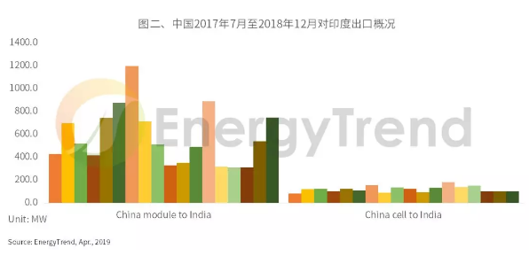 印度在2018年7月26日啟動(dòng)防衛(wèi)性關(guān)稅,然而觀察中國對(duì)印度的出口狀況,可見印度拉貨需求雖在8-10月因政策反復(fù)而陷入低點(diǎn),但11月之后的進(jìn)口量明顯回溫。印度市場仍有需求缺口,且中國多晶組件加稅后價(jià)格仍可控制在 US$0.29/W 以下,使印度的防衛(wèi)性關(guān)稅保護(hù)程度不足,僅有來自越南、泰國的免稅組件有機(jī)會(huì)與稅后的中國組件競爭。