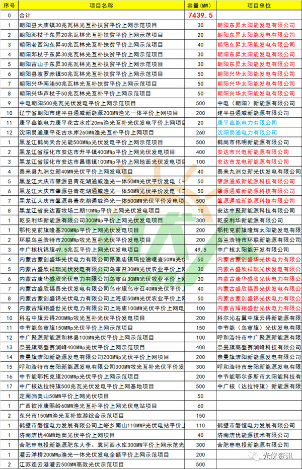各地政府及企業(yè)積極準(zhǔn)備,近日筆者整理了部分平價(jià)上網(wǎng)項(xiàng)目名單,供光伏人參考。目前可查詢到的已備案項(xiàng)目一共有7.44GW,其中內(nèi)蒙古2.8GW,黑龍江1.65GW,遼寧1.28GW,山西、河南、河北等光伏大省尚未公開查詢到相關(guān)信息。
