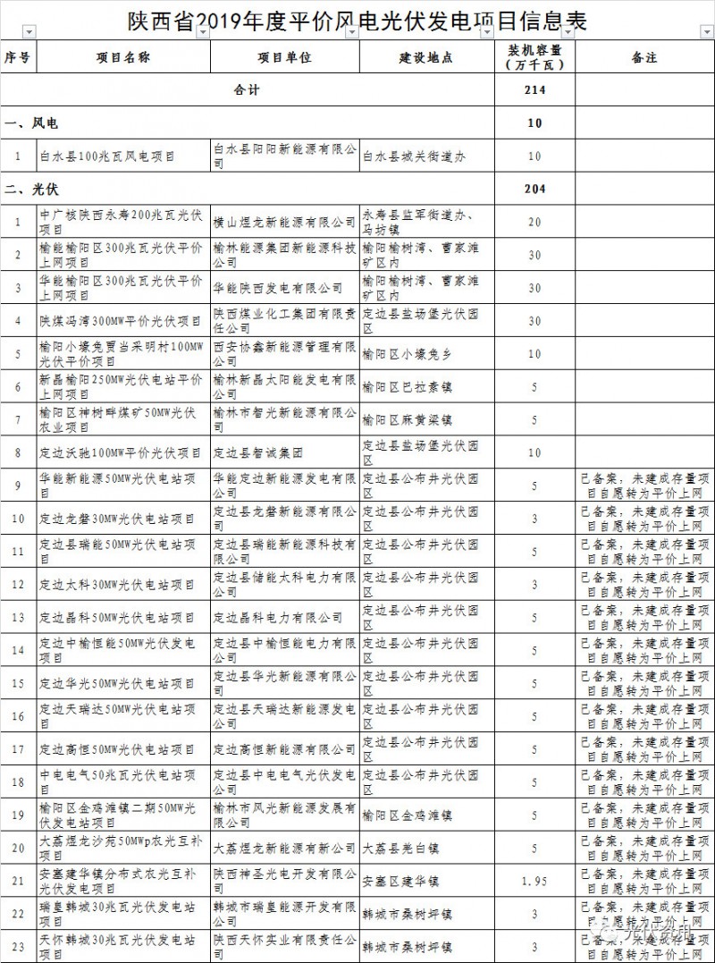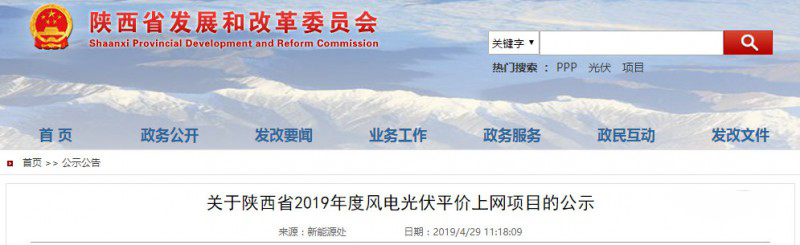 關(guān)于陜西省2019年度風(fēng)電光伏平價上網(wǎng)項目的公示