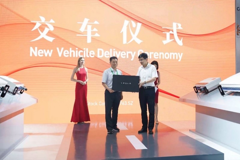 6月4日上午11點(diǎn),錦浪科技于展位區(qū)舉行了第五代5G逆變器技術(shù)平臺(tái)發(fā)布會(huì)及特斯拉交車儀式。