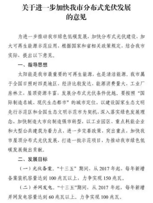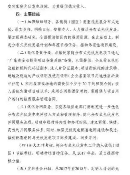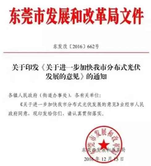 東莞發(fā)改于2016年12月15日印發(fā)《關(guān)于進一步加快我市分布式光伏發(fā)展意見》的通知,為“十三五”期間光伏發(fā)展指定規(guī)劃,目標(biāo)力爭自2017年起每年新增150MW光伏裝機備案,并提出以下要求: