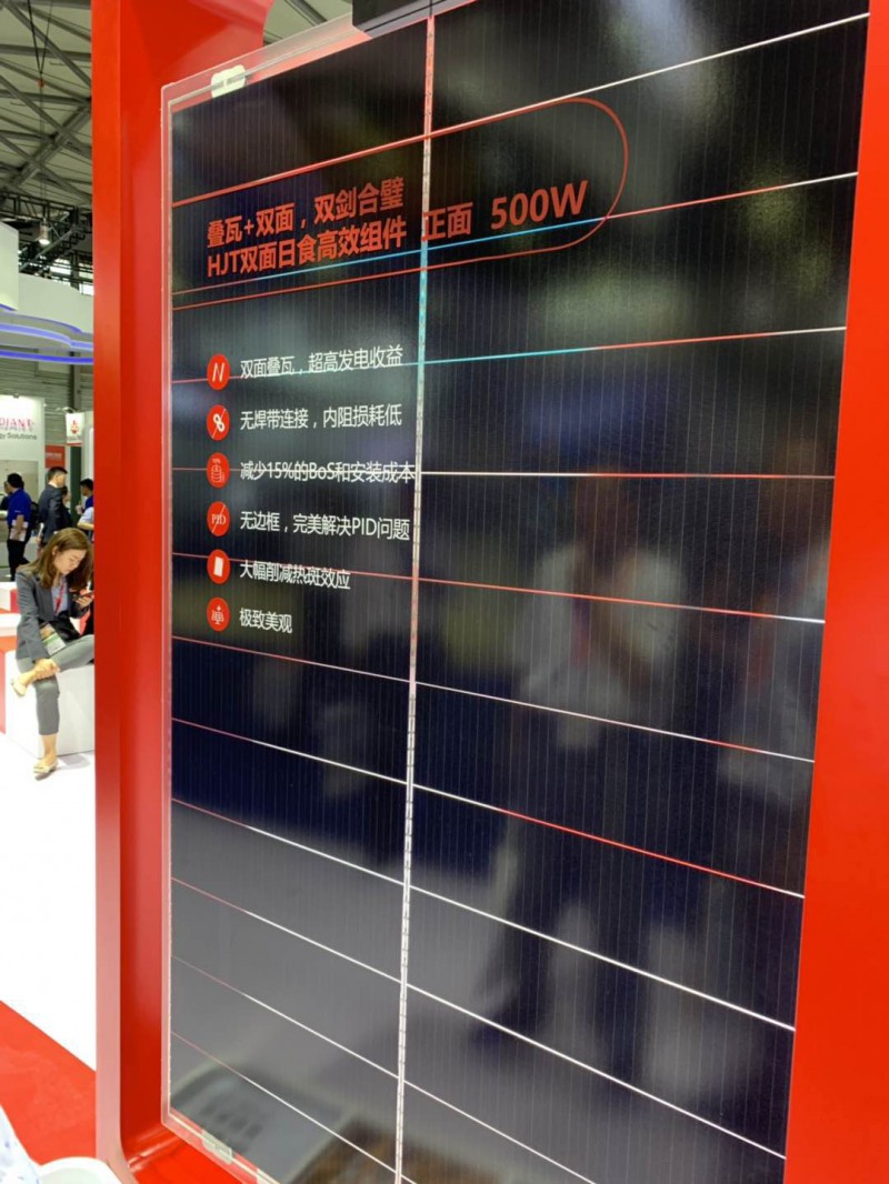 同時,疊瓦技術(shù)與高效電池技術(shù)的疊加也可使組件效率大幅提升,塞拉弗的雙面日食組件同時應(yīng)用了疊瓦與HIT電池技術(shù),組件功率達(dá)到500W。