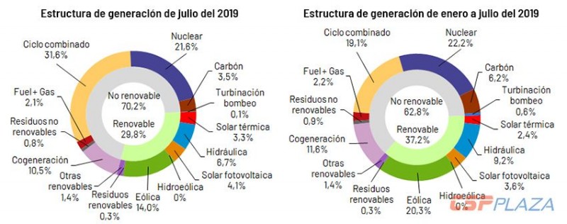 西班牙電網(wǎng)運營商Red Electrica de Espana (REE) 公開數(shù)據(jù)顯示,2019年7月份,西班牙可再生能源發(fā)電量占總發(fā)電量的29.8%,其中