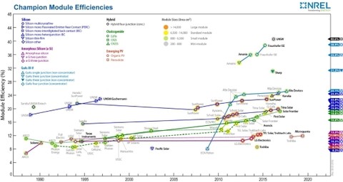 據(jù)悉,這家創(chuàng)業(yè)公司已經(jīng)不是第一次打破國外科學家對鈣鈦礦技術(shù)的壟斷了。2017年,他們在鈣鈦礦光伏“小組件(20cm2)”效率上的突破,超越了日本物質(zhì)材料研究所12.1%的紀錄,之后,他們更是連續(xù)打破了由自己創(chuàng)下的小組件效率紀錄,從2017年的15.2%一路提升至2018年的17.9%,穩(wěn)態(tài)效率17.3%。至今,他們?nèi)允氢}鈦礦小組件效率紀錄的保持者,也是唯一一家連續(xù)上榜的中國機構(gòu)。