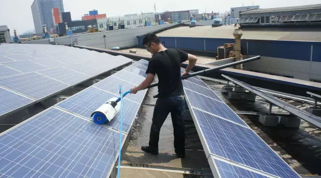 目前有些光伏發(fā)電系統(tǒng)還僅依賴于降雨、風(fēng)等自然作用對光伏面板的積灰進(jìn)行清除。一些小型光伏電站采用人工清潔的方法,一般用拖把、橡膠刮條或柔軟的抹布進(jìn)行清洗。