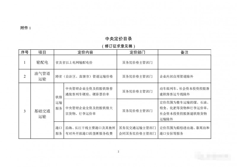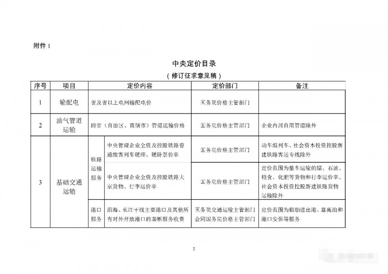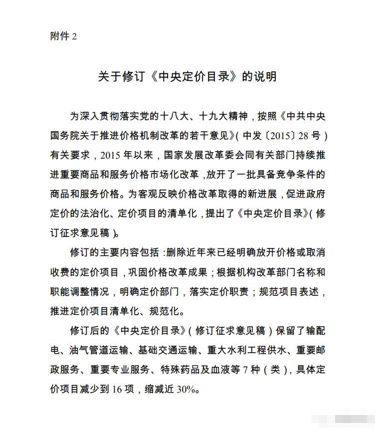 附件:1.《中央定價目錄》(修訂征求意見稿)