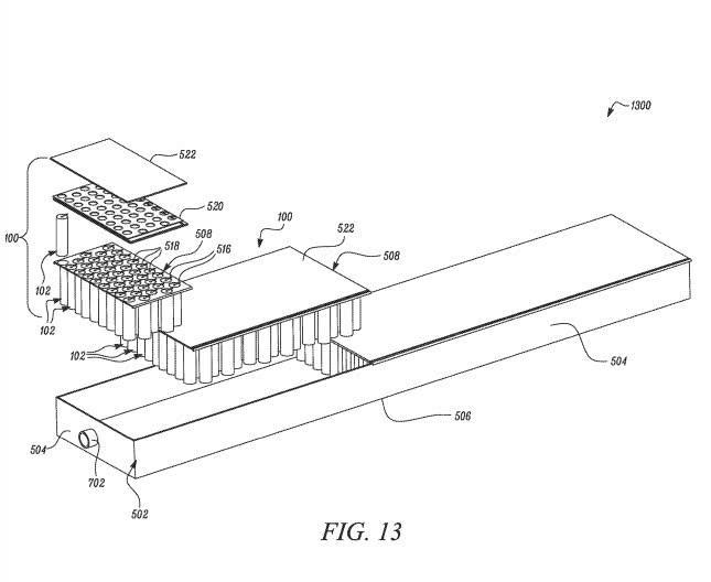 該項新專利可以通過在電池系統(tǒng)中采用尺寸更小的電池芯,幫助降低成本。該專利表示,雖然由于尺寸減小、材料需求減小,電池芯的產(chǎn)量需要增加,但是電池芯變小會增加制造電池系統(tǒng)的復(fù)雜性。