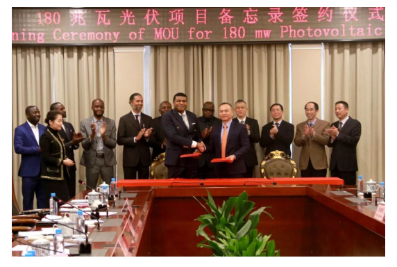 12月17日上午,新余北湖賓館多嬌廳,在新余市委常委、副市長(zhǎng)張航,高新區(qū)黨工委書記喻國(guó)杰、市政府副秘書長(zhǎng)易勇及市有關(guān)單位、賽維集團(tuán)領(lǐng)導(dǎo),剛果民主共和國(guó)總統(tǒng)顧問(wèn)恩蒂迪卡·尼米·約瑟,議會(huì)會(huì)員阿杜班戈·阿沃托·塞繆爾等見(jiàn)證下,賽維太陽(yáng)能科技集團(tuán)董事長(zhǎng)甘勝泉與剛果民主共和國(guó)下韋萊省省長(zhǎng)森加·佩沙約·瓦倫汀簽署180MW光伏項(xiàng)目合作備忘錄,雙方將在光伏電站建設(shè)、為剛果提供清潔電力能源方面展開(kāi)合作。