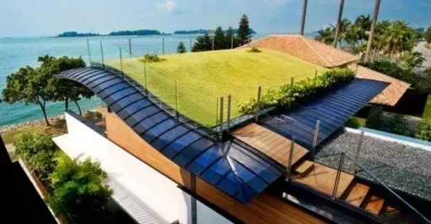 光伏板與屋頂設(shè)計相融合,光伏發(fā)電供給整個別墅的電力系統(tǒng),整個設(shè)計既美觀又環(huán)保,創(chuàng)意十足!
