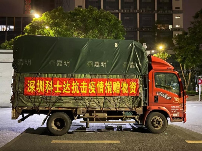 載著防護(hù)物資的專車從科士達(dá)工廠出發(fā)