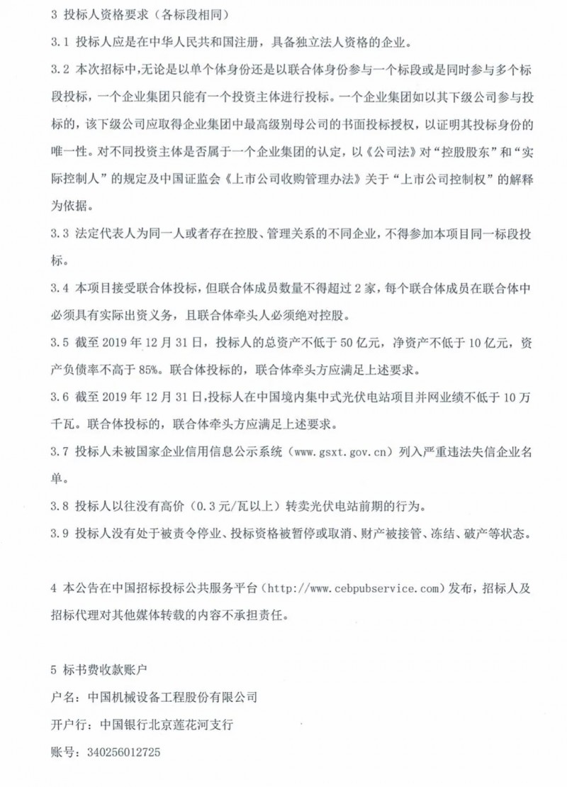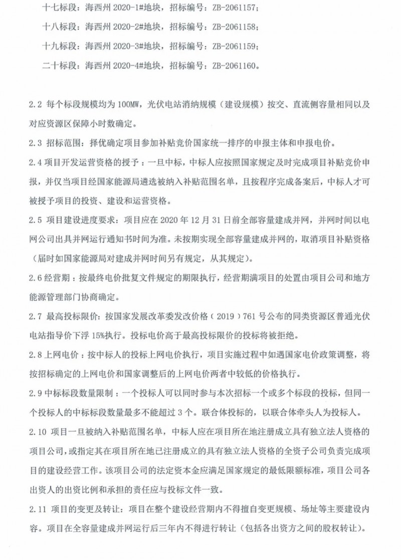 此外,競價項目需于2020年12月31日之前完成全容量并網(wǎng),未按期完成并網(wǎng)的取消補貼資格;一個投標人可以同時參與一個或多個標段的投標,但同一中標人的中標數(shù)量不得超過3個。