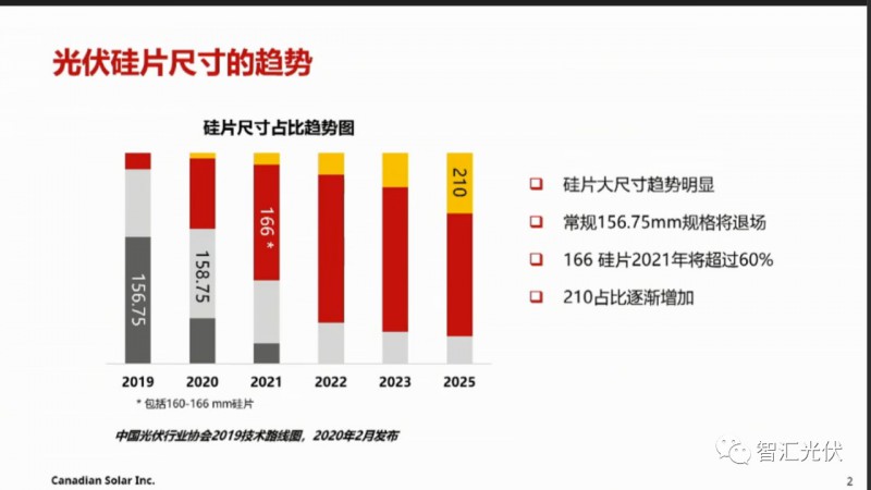 2020年以158為主,而2021年166硅片降超過60%,成為主流。