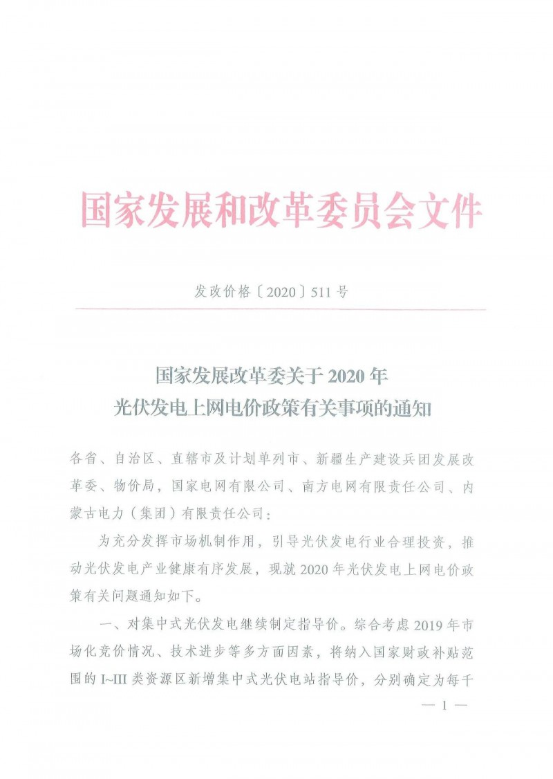 2020年3月31日,國(guó)家發(fā)改委價(jià)格司發(fā)布 發(fā)改價(jià)格〔2020〕511號(hào)《國(guó)家發(fā)展改革委關(guān)于2020年