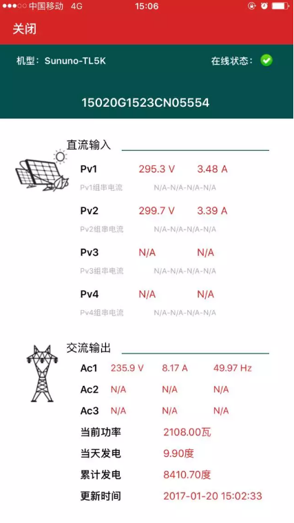 可監(jiān)測組串運(yùn)行的實(shí)時(shí)電壓、電流??焖倥袛嘟M串是否運(yùn)行正常,實(shí)現(xiàn)高效運(yùn)維。