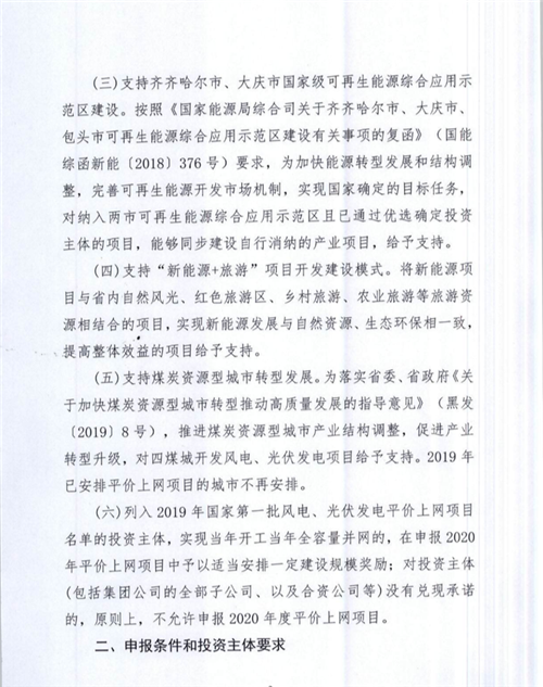 3、對納入齊齊哈爾及大慶可再生能源示范區(qū)的主體項目方且能夠同步建設自行消納產業(yè)項目的;