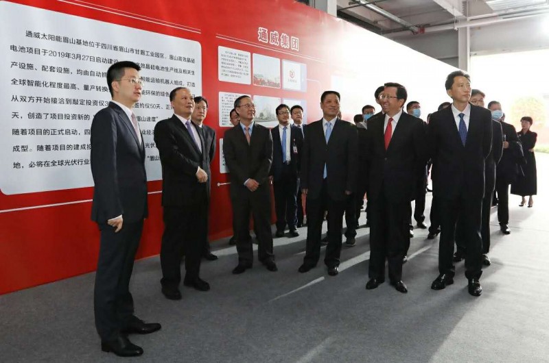 2018年12月6日,位于成都天府大道中段588號的通威集團總部,迎來了幾位特別的客人。眉山市委書記幕新海親自帶隊,調研考察、精準招商,與通威團隊進行了坦誠溝通。2019年3月27日,通威太陽能眉山項目開工;2020年4月21日,眉山一期項目建成投產。