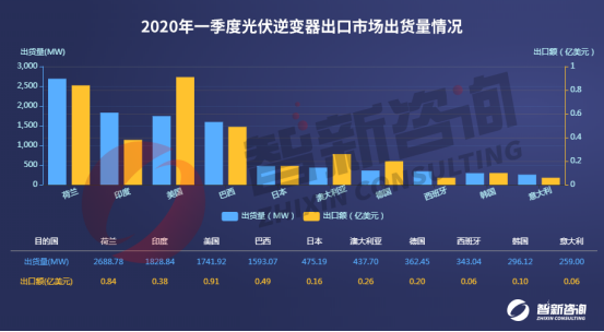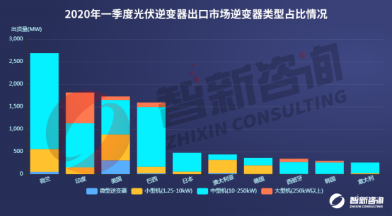 圖2:2020年一季度光伏逆變器出口市場出貨量情況