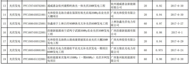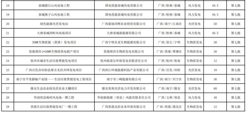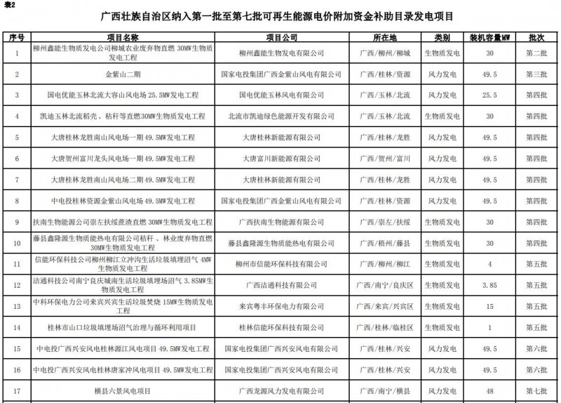 廣西壯族自治區(qū)(廣西電網(wǎng)有限責(zé)任公司供電區(qū)域內(nèi))首批可再生能源發(fā)電項(xiàng)目補(bǔ)貼清單(第一階段)