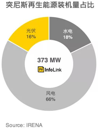 目前突尼斯整體再生能源裝機(jī)量為373MW,其中以風(fēng)電的裝機(jī)量占比(66%)最高,其次則為水電(18%)及光伏(16%)。距離2030年3.8GW的裝機(jī)量目標(biāo)尚有一段距離。