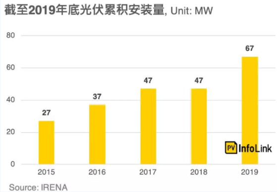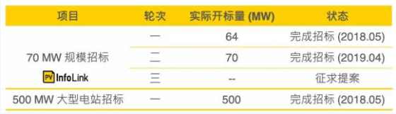 2017年由政府完成首輪70MW光伏招標(biāo),目前一共完成兩輪同等規(guī)模的招標(biāo)計劃,共開出134MW的標(biāo)案量,而第三輪目前則尚在招標(biāo)階段。另外值得注意的是于2019年12月份國家更完成了首個規(guī)模500MW的光伏招標(biāo)計劃。