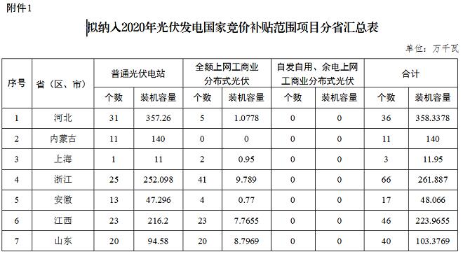 25.97GW 國家能源局公布2020年光伏補(bǔ)貼競價(jià)名單