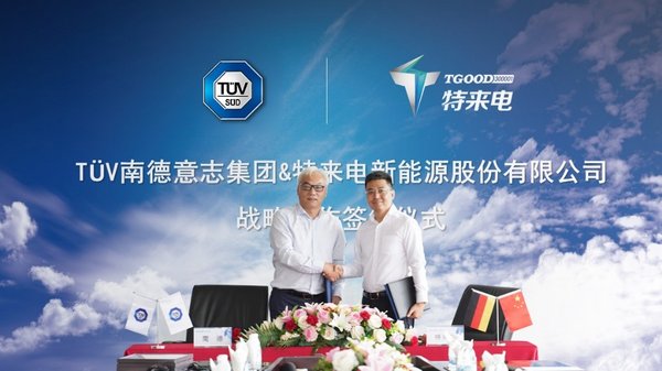 TUV南德北亞區(qū)管理服務部高級副總裁孫建軍先生與特來電總裁郭永光先生簽署戰(zhàn)略合作協(xié)議