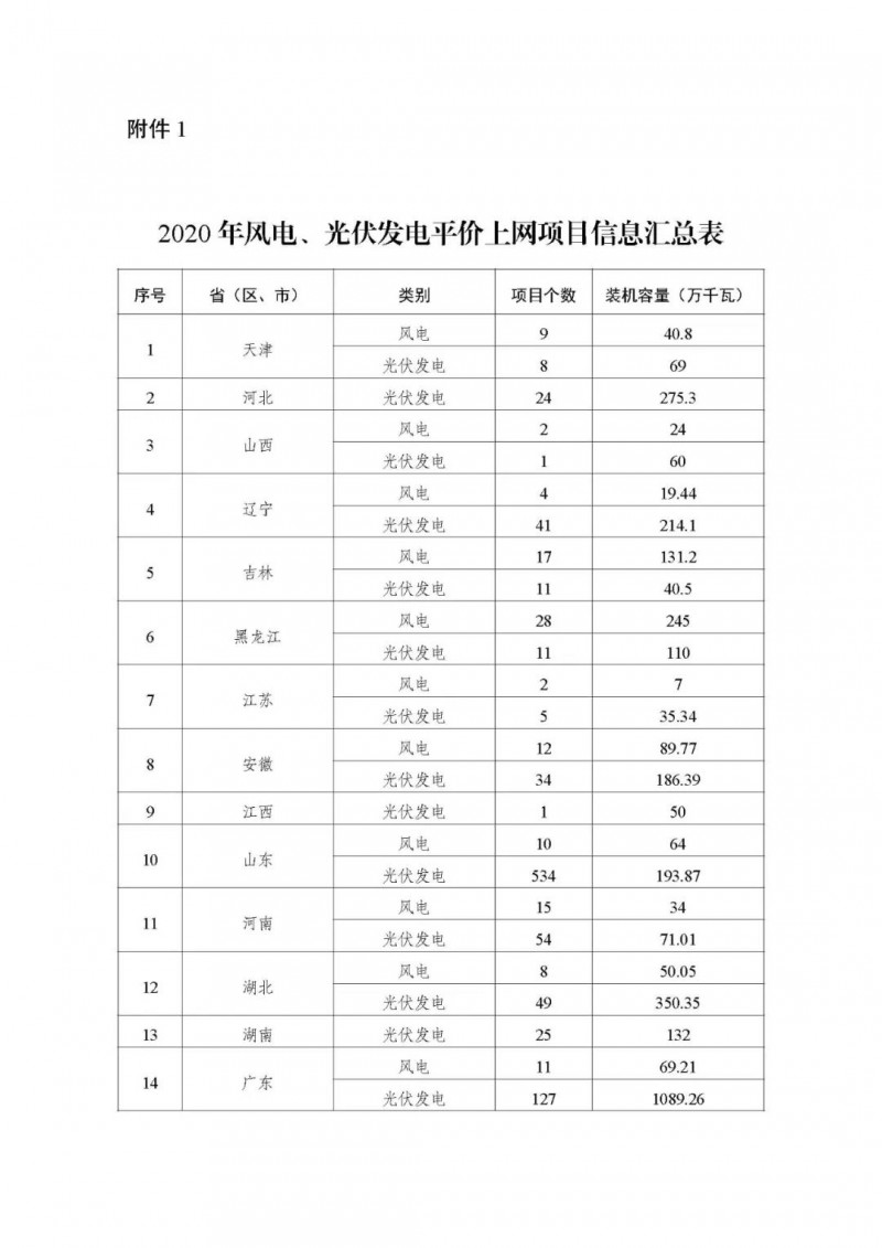 附件:1.2020年風電、光伏發(fā)電平價上網(wǎng)項目信息匯總表