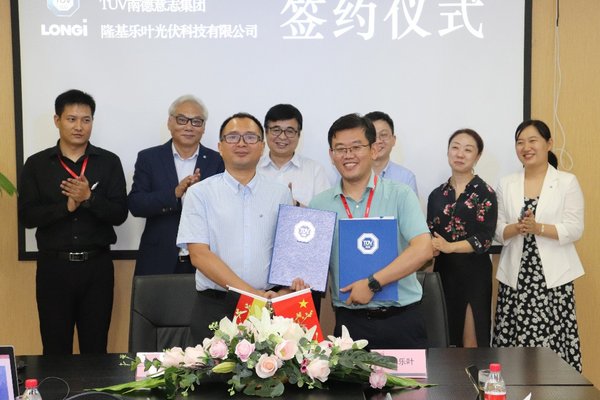 TUV南德許海亮先生(左)與隆基樂葉王高升先生簽署協(xié)議