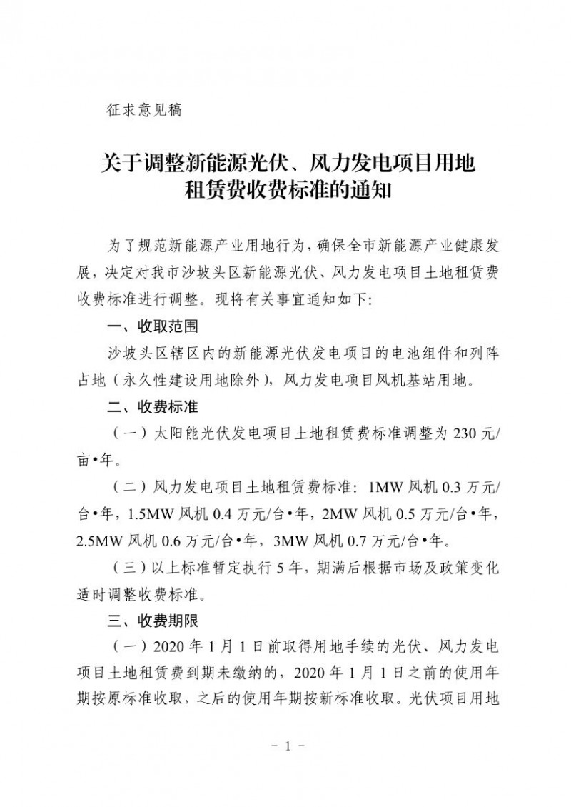 關(guān)于向社會(huì)公眾征求《關(guān)于調(diào)整新能源光伏、風(fēng)力發(fā)電項(xiàng)目用地租賃費(fèi)收費(fèi)標(biāo)準(zhǔn)的通知》意見的公告