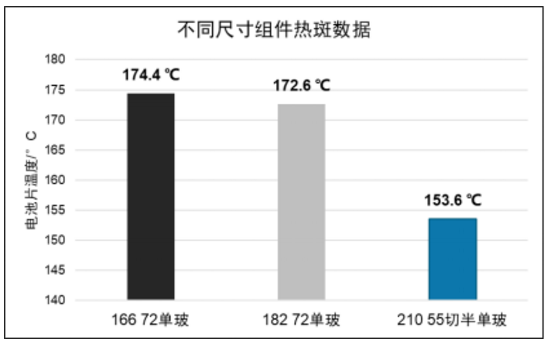 戶外實(shí)測(cè)的結(jié)果也支持這一結(jié)論。今年9月,天合對(duì)166、182、210組件均采用30%比例的單個(gè)小片遮擋條件,測(cè)試戶外熱斑溫度,其中166與182組件熱斑溫度基本一致,210熱斑溫度低19℃左右,這充分表明,相對(duì)市場(chǎng)其他地面電站組件,至尊系列組件具備更優(yōu)異的抗熱斑能力。