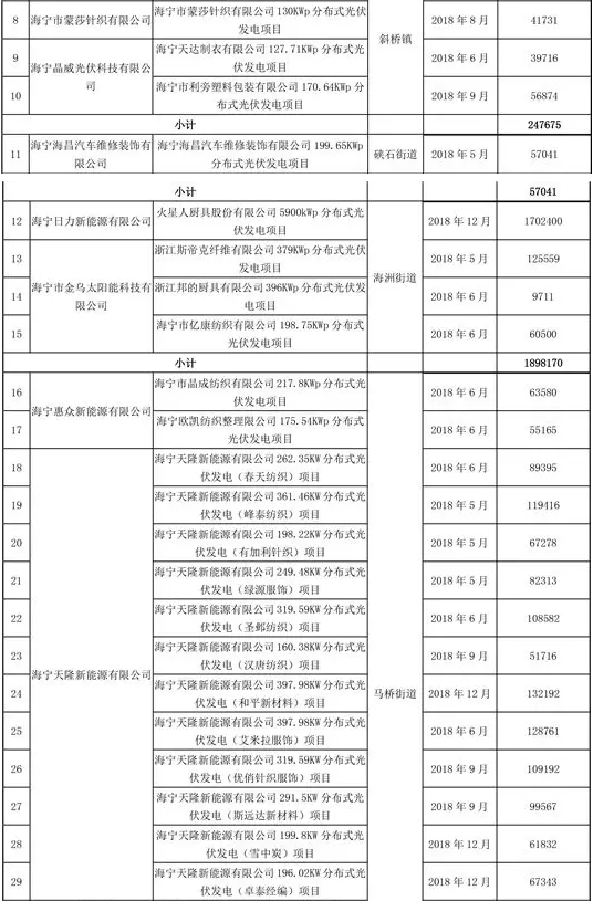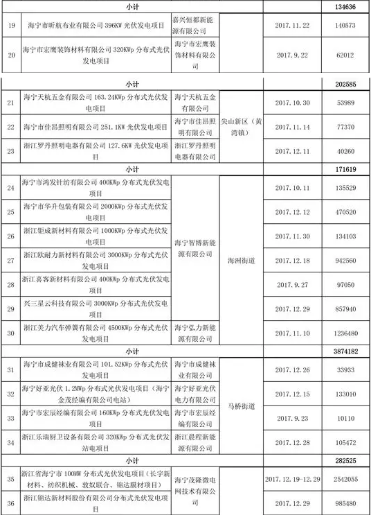 浙江海寧市公示2020年三季度光伏發(fā)電項(xiàng)目擬補(bǔ)助發(fā)電量