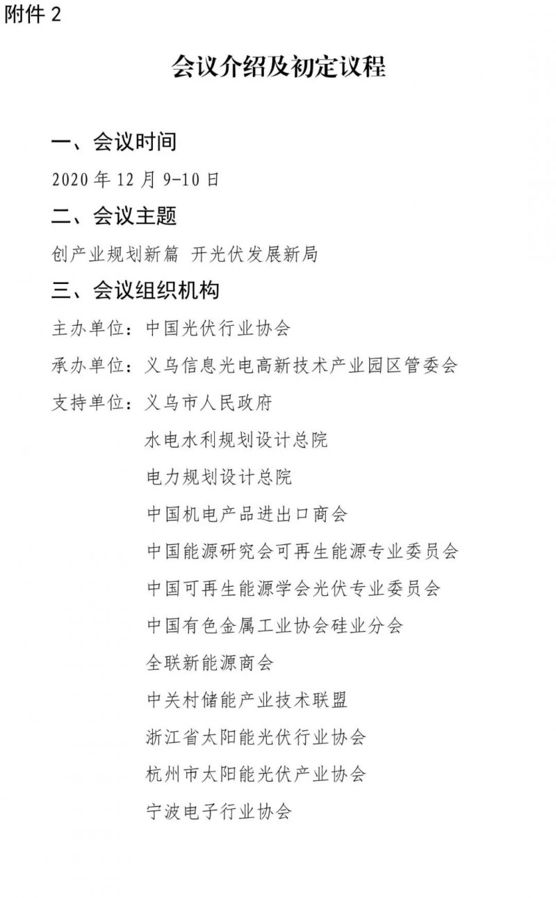 為更好探討新階段、新形勢下我國未來光伏行業(yè)發(fā)展方向與路徑,促進行業(yè)交流與溝通,中國光伏行業(yè)協(xié)會擬于2020年12月10日召開“2020中國光伏行業(yè)年度大會”,邀請行業(yè)主管部門、行業(yè)組織、行業(yè)專家、光伏企業(yè)領(lǐng)袖等代表一起就行業(yè)發(fā)展熱點問題進行探討分析。大會同期(12月9日)還將組織召開產(chǎn)業(yè)化技術(shù)發(fā)展與應(yīng)用論壇。