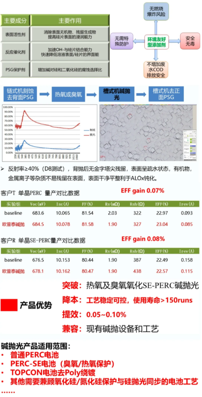 光伏堿拋光輔助添加劑產(chǎn)品,為客戶提供高效電池片生產(chǎn)工藝技術(shù)解決方案。