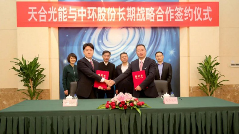 簽約儀式在天合光能常州總部舉行。天合光能董事長(zhǎng)高紀(jì)凡、中環(huán)股份總經(jīng)理沈浩平出席簽約儀式。