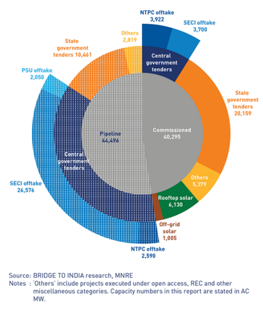 近日,BRIDGE TO INDIA 發(fā)布了2020年第三季度印度太陽能發(fā)展報(bào)告。印度在2020年第三季度僅新增853兆瓦的太陽能裝機(jī),截止到2020年9月30日,印度的太陽能總裝機(jī)容量達(dá)到40,295兆瓦。第三季度新增裝機(jī)環(huán)比增長了143%,但仍受到疫情相關(guān)因素的影響,包括勞動(dòng)力和設(shè)備短缺。
