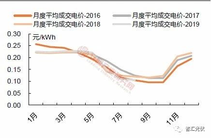 從上圖可以看出,12月~次年4月的交易價格,基本在0.2~0.25元/kWh之間。