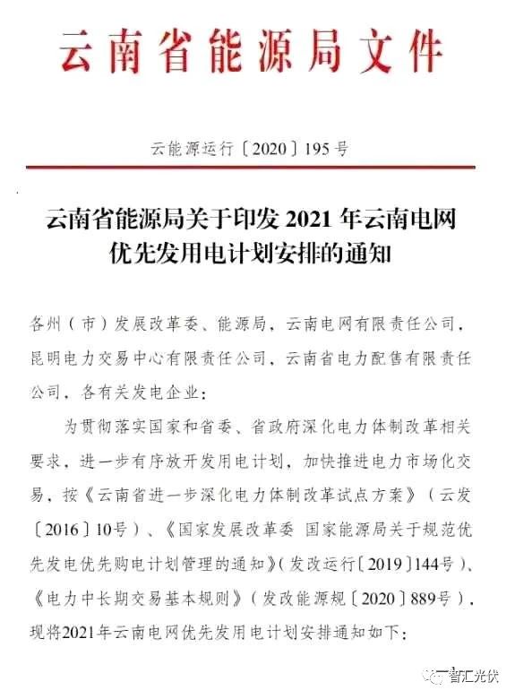 11月25日,云南省能源局下發(fā)《2021年云南電網(wǎng)優(yōu)先發(fā)用電計(jì)劃安排的通知》,將風(fēng)電、光伏歸為一類優(yōu)先發(fā)電計(jì)劃,但要求:1)平、枯水期全部市場化交易;2)豐水期執(zhí)行云南省城鄉(xiāng)居民用能替代政策!