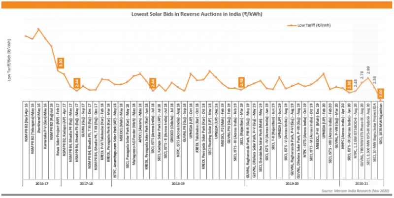 2盧比(約2.7美分)/kWh的最低中標(biāo)電價比之前的最低歷史電價2.36盧比(約3.19美分)/kWh降低了15%。