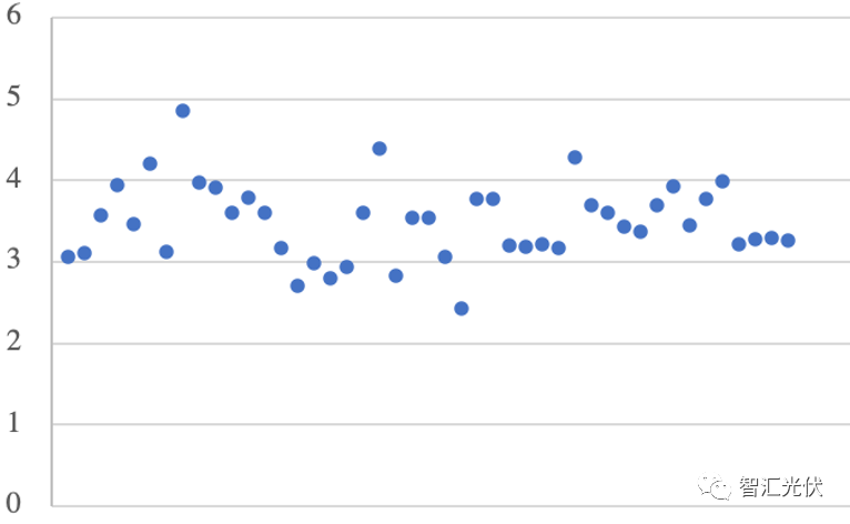 上圖為51個EPC中標(biāo)價格(含組件、逆變器),2.43~4.85元/W之間,加權(quán)平均價格為3.28元/W;考慮到非技術(shù)成本,總成本大致在3.5~4元/W之間。