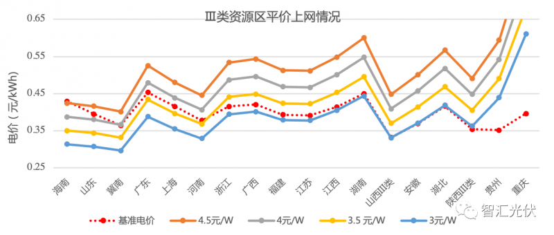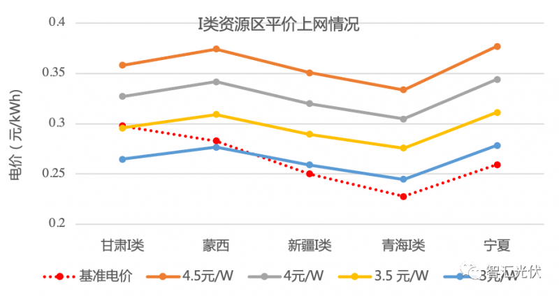 不同資源區(qū)的平價上網(wǎng)情況如下面的圖表所示。