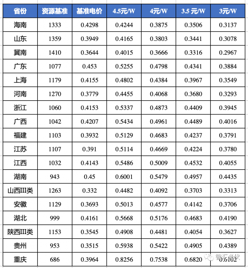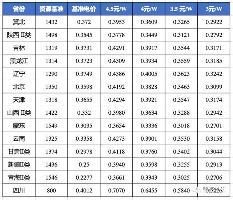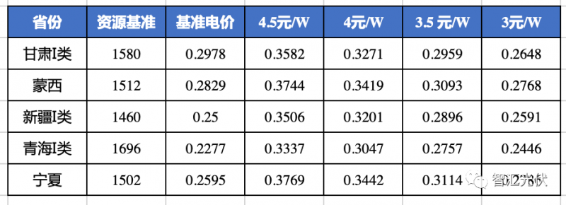青海、寧夏的基準(zhǔn)電價比3元/W時的反算電價還低,說明即使在3元/W,這兩個省的光伏項目,也很難以基準(zhǔn)價實現(xiàn)8%的收益。